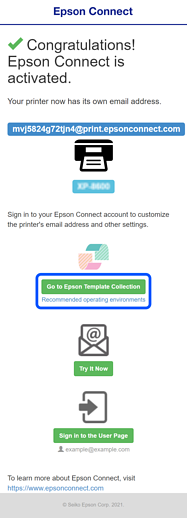 Bu işlem yazıcı kaydını tamamlar. Epson Template Collection’dan yazıcı kullanabilirsiniz.