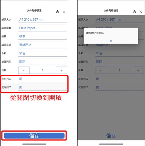 * 列印多份的時陣,建議開啟『逐份列印』功能。